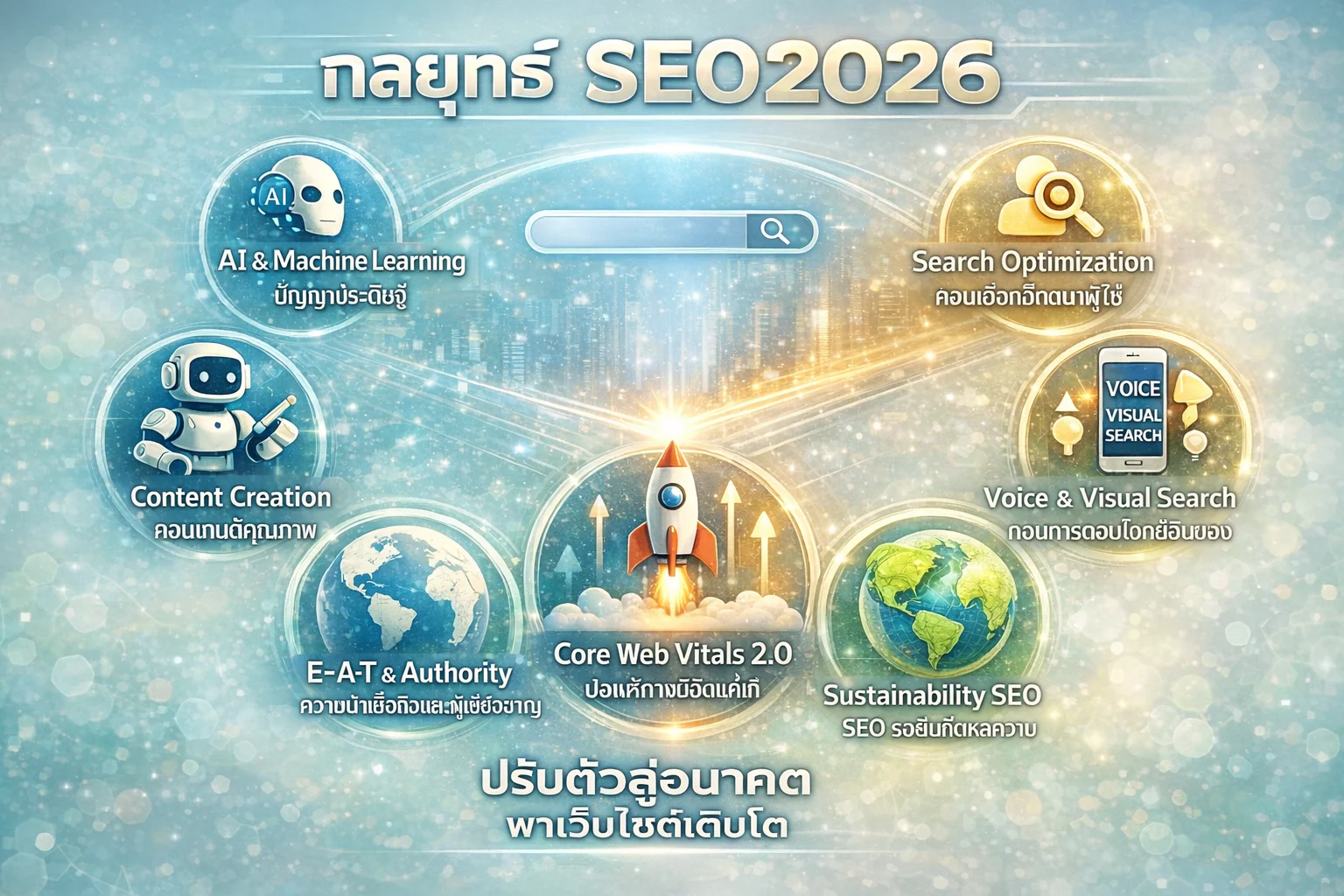 การทำ SEO ในปี 2026 เปลี่ยนจากการเน้นคีย์เวิร์ดไปสู่การสร้างคอนเทนต์ที่เป็น “คำตอบที่ดีที่สุด” เพื่อรองรับ AI Search (AEO & GEO) ผ่านการ ออกแบบเว็บไซต์ ที่เน้นประสบการณ์ผู้ใช้และ E-E-A-T เป็นสำคัญ